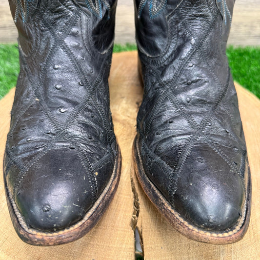 Botas ORC Men - Size 11.5D - Black Ostrich Patchwork Cowboy Boots