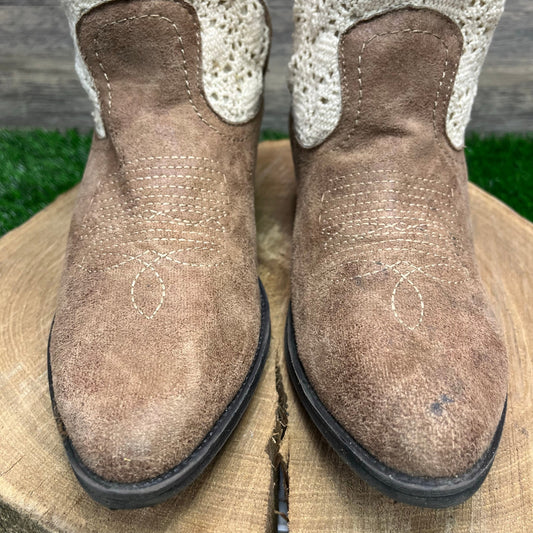 Madden Girl Women - Size 10M - Tan/Cream Soft Faux Leather Ankle Boots