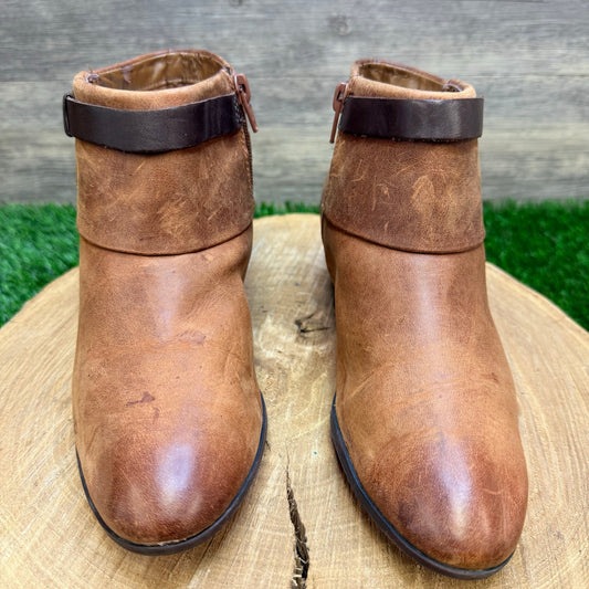 Clarks Women - Size 5M - Tan Ankle Strappy Zipper Boots