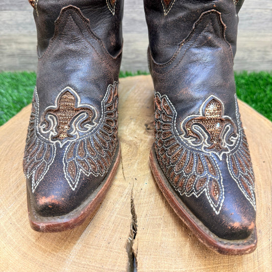 Corral Women - Size 7M - Brown Fleur De Lis Wings Cowboy Boots R2549