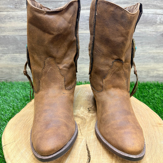 Sugar Women - Size 7.5M - Brown Native Design Faux Leather Boots 427404