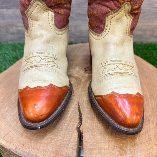 Texas Women - Size 7.5M - Vintage Cream / Orange Cowboy Boots L193