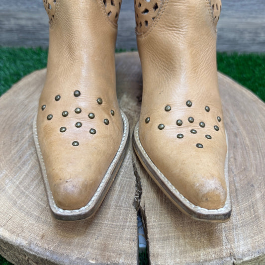 Corral Women - Size 7 - Distressed Tan Stitched Snip Toe Cowboy Boots G1902