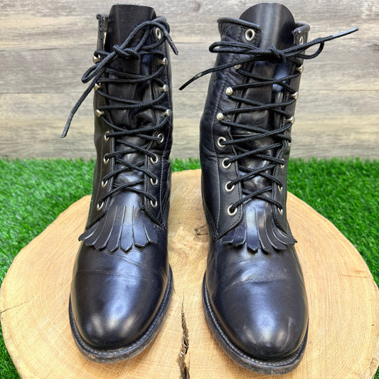 Justin Women - Size 7B - Vintage Black Lace Up Boots L0506