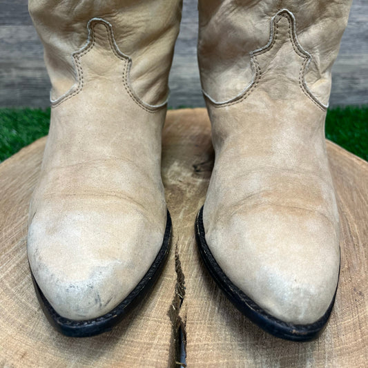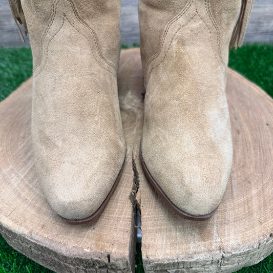 Silver Star Women - Size 8 Vintage Sand Suede Fringe Cowboy Boots Style Houston