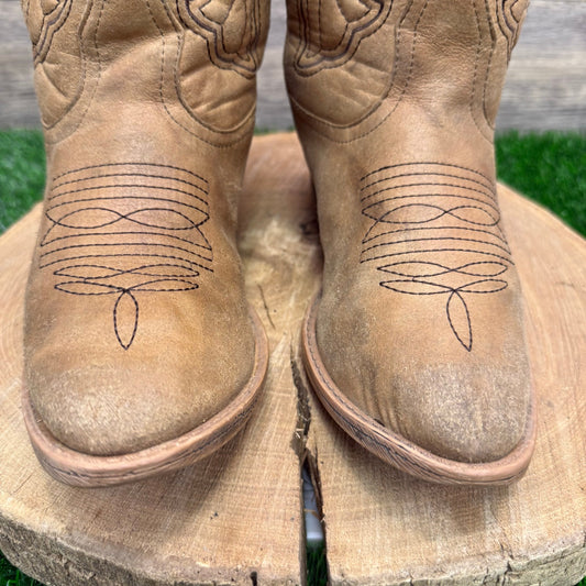 Coconuts Women - Size 8M - Tan Soft Faux Leather Cowboy Boots Legend
