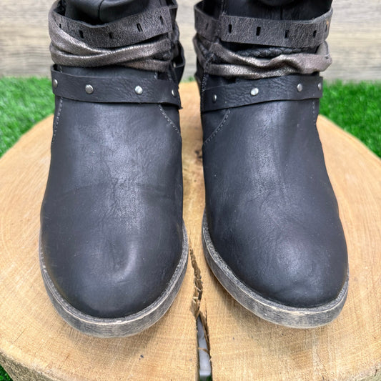 Jellypop Women - Size 9M - Black Harness Faux Leather Ankle Zipper Boots
