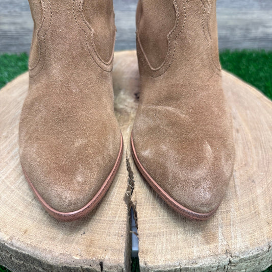 Frye Women - Size 9M - Tan Suede Ankle Zipper Boots Style 3471740