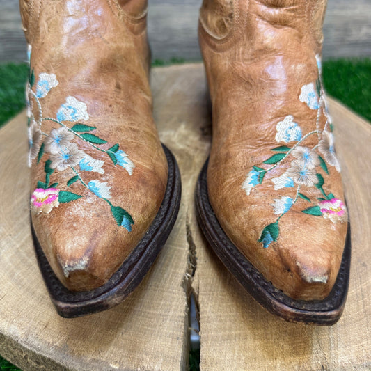 Macie Bean Women - Size 9M - Tan Rose Garden Snip Toe Cowboy Boots Style M8012
