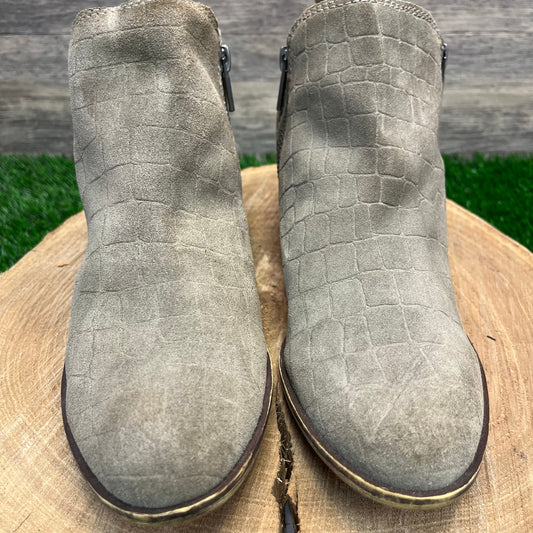 Lucky Brand Women - Size 9M - Olive Green Gator Print Ankle Boots Style Basel