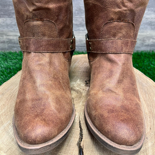 Coconuts Women - Size 9M - Brown Faux Leather Harness Zipper Boots Anney