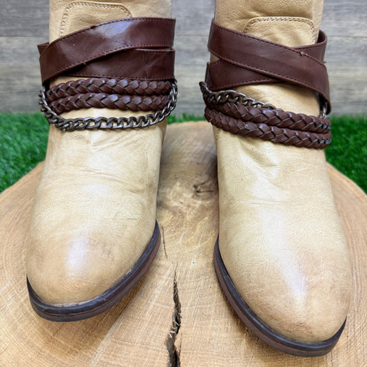 Pierre Dumas Women - Size 9 - Tan Ankle Zipper Belt Boots