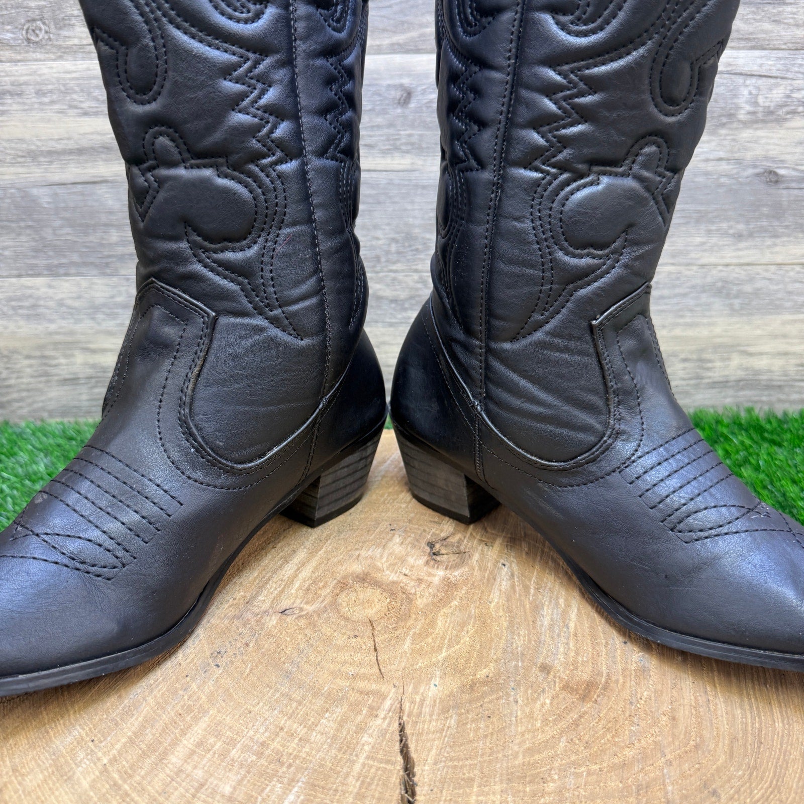 Chase Chloe Women - Size 7 - Black Soft Faux Leather Boots Style Charles-1