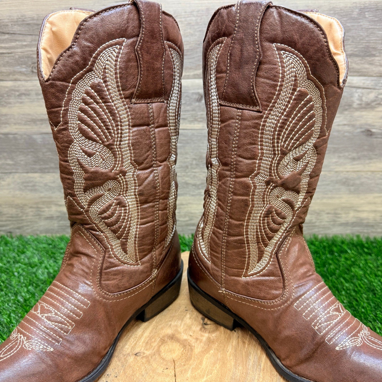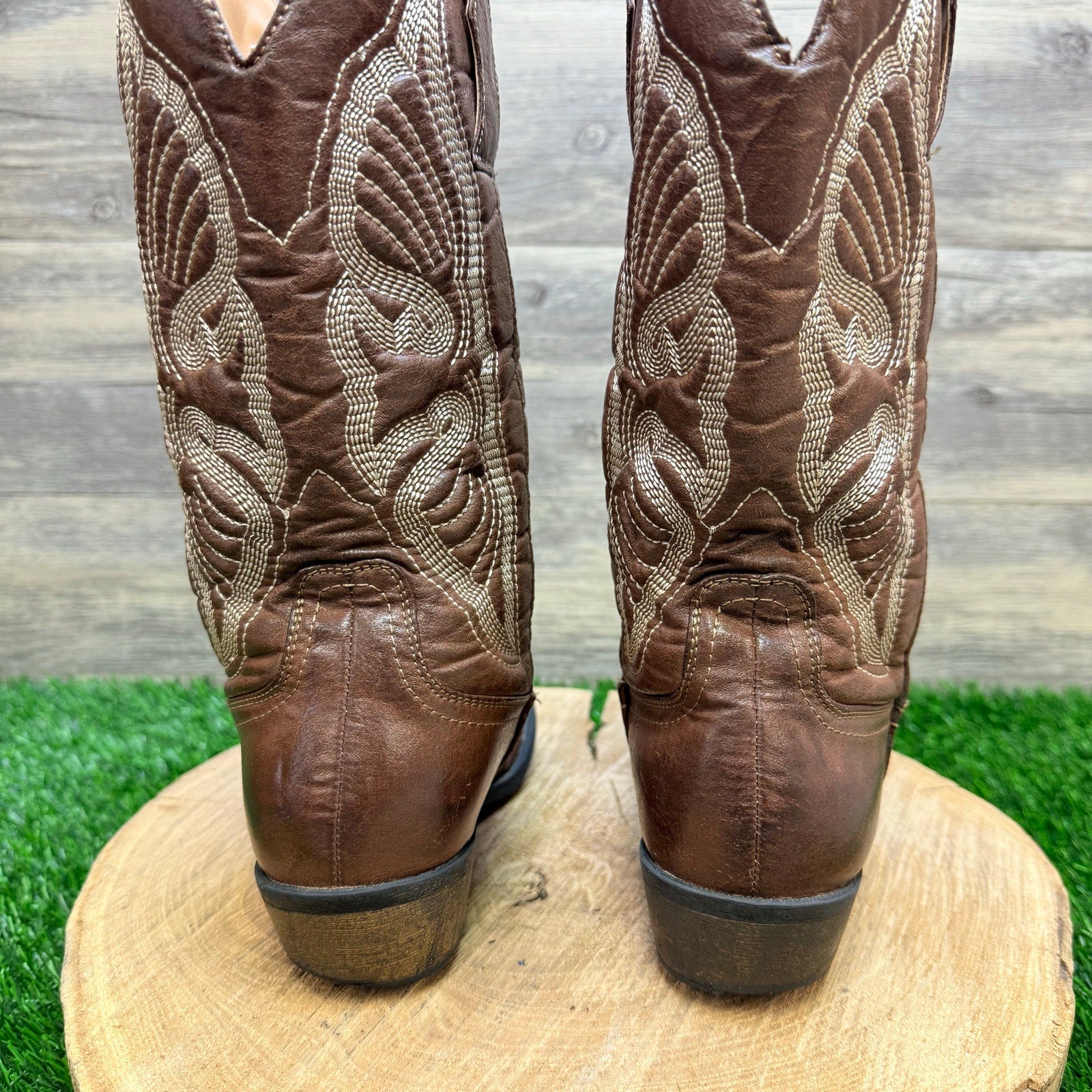 Flex West Women - Size 6.5M - Brown Soft Faux Leather Cowboy Boots Reba