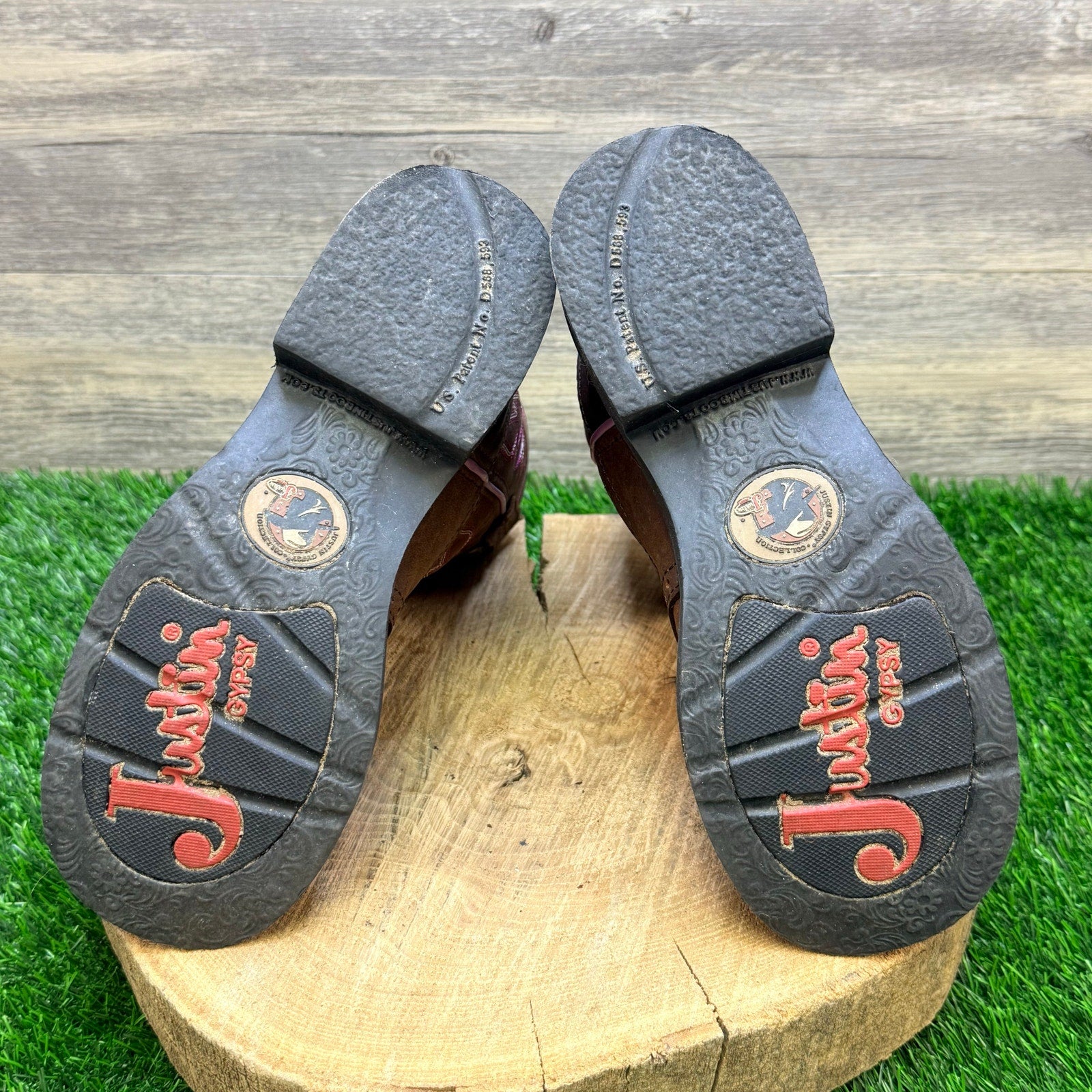 Justin Women - Size 6.5B - Brown / Pink Gypsy Round Toe Cowboy Boots L9903