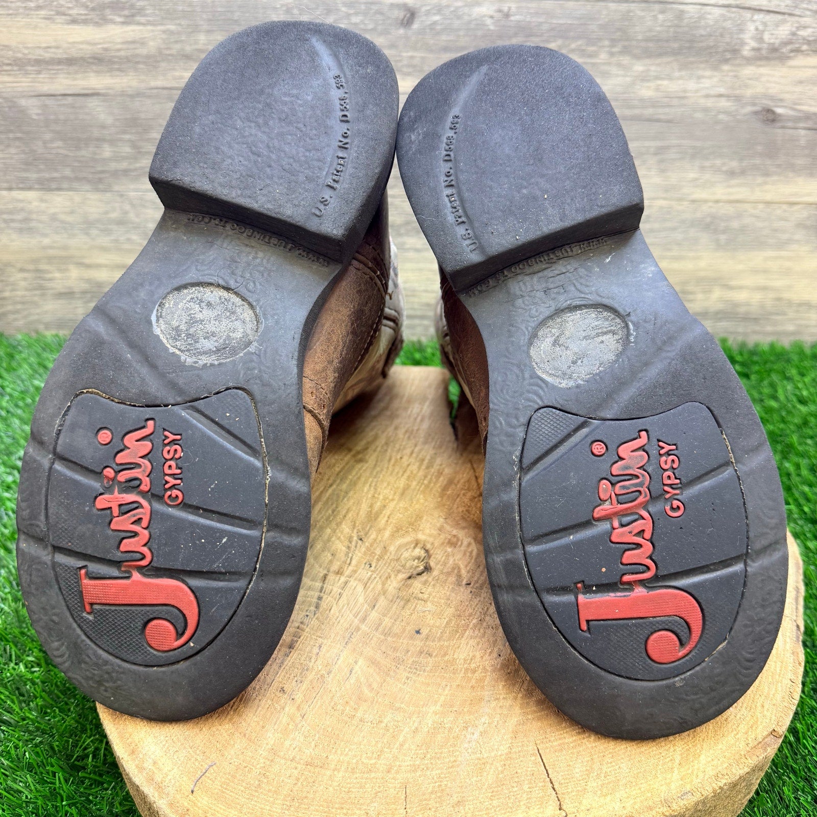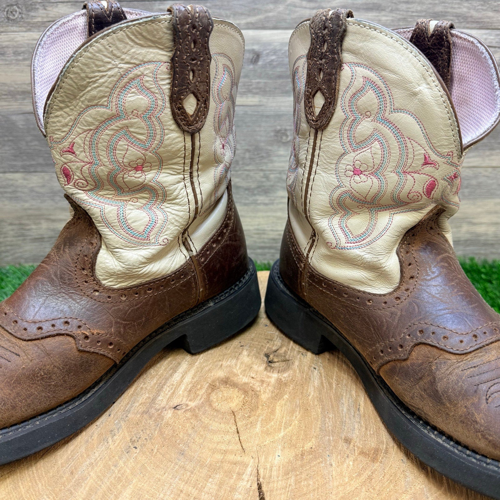 Justin Women - Size 9B - Brown / Pink Two Tone Round Toe Cowboy Boots L9924