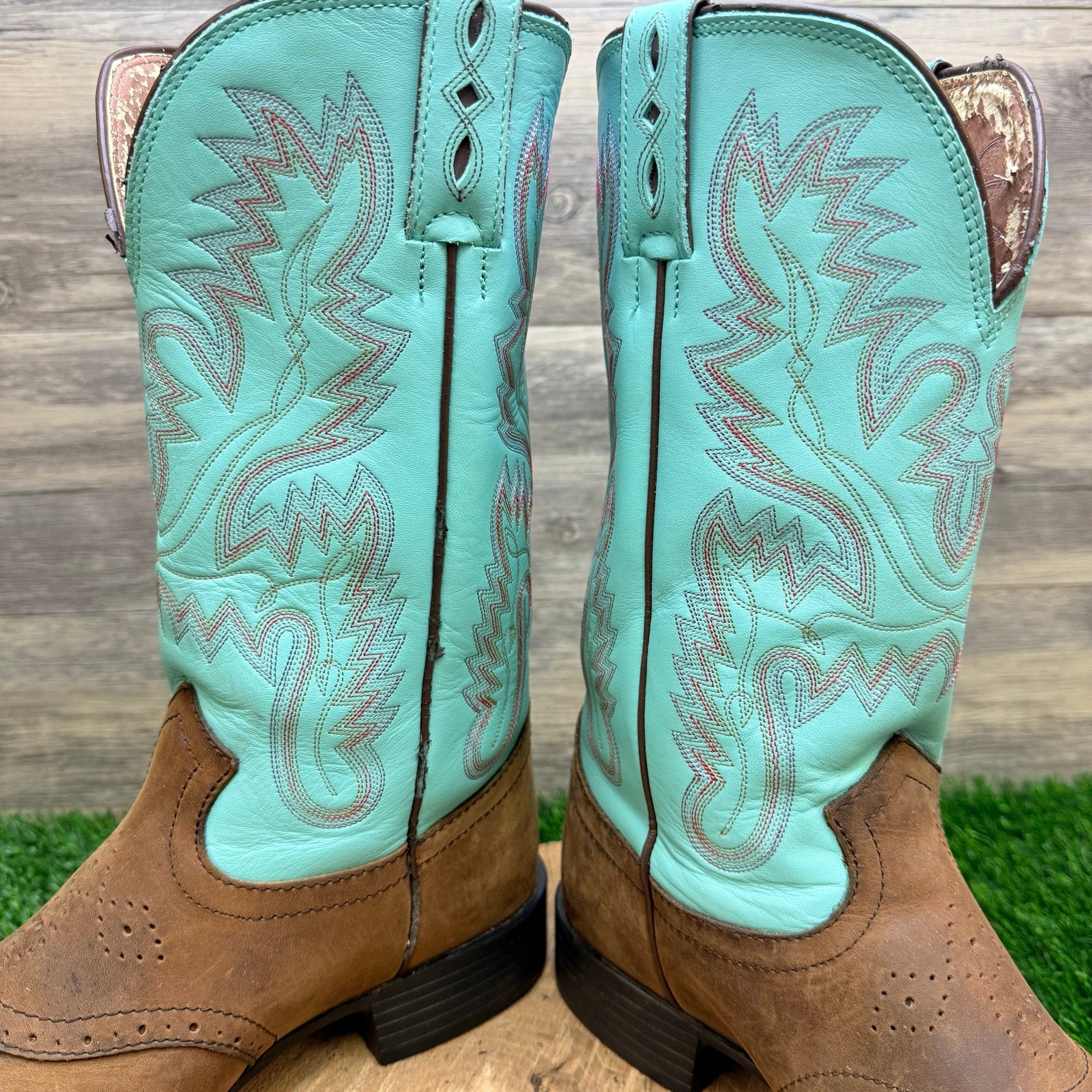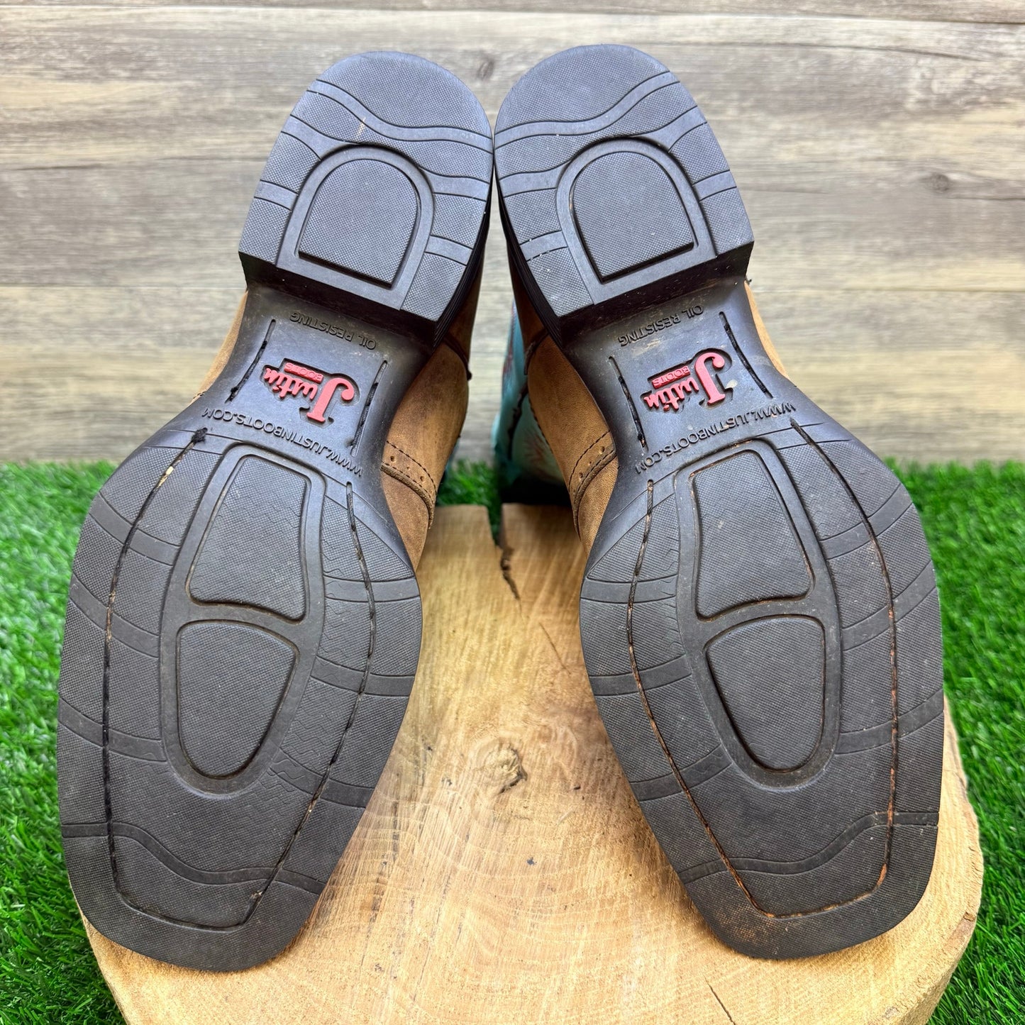 Justin Women - Size 9B - Brown / Turquoise Square Toe Boots L4853
