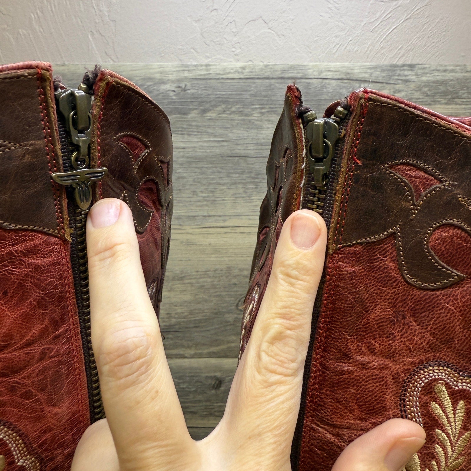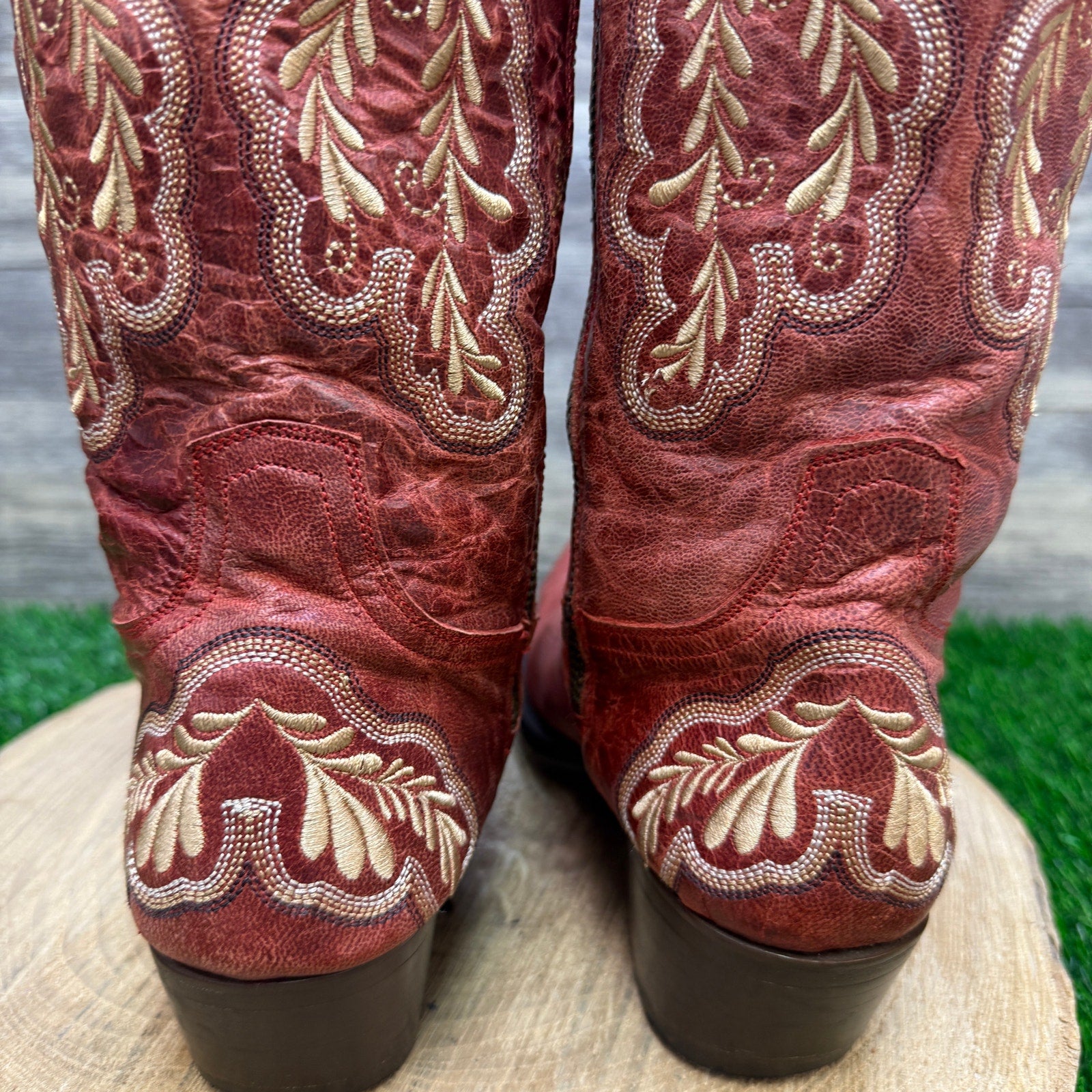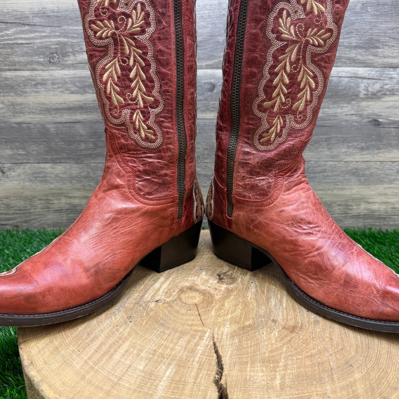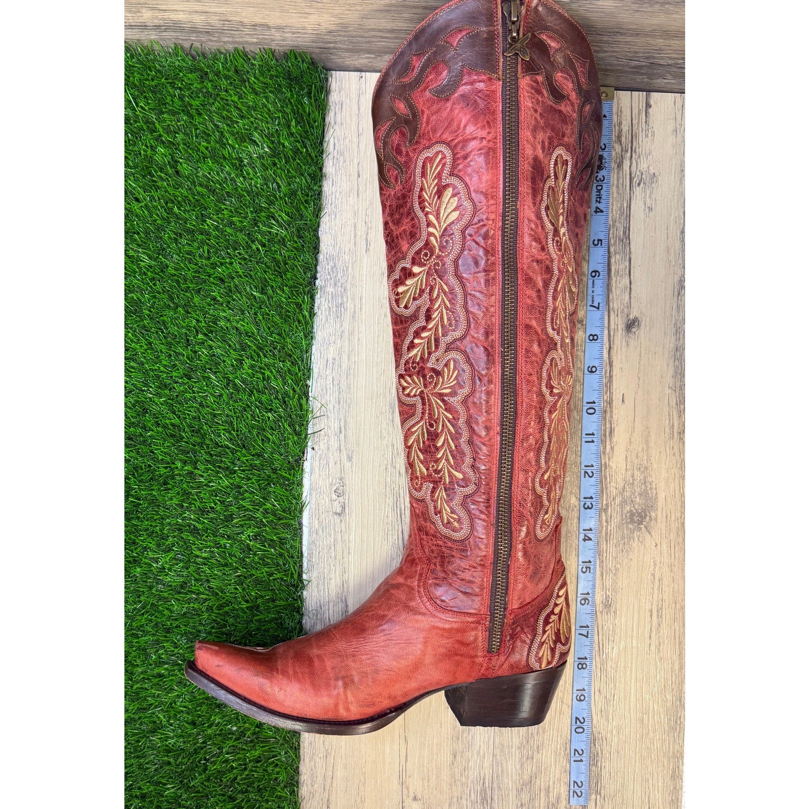 Lane Women - Size 8.5 - Red Tall Zipper Snip Toe Cowboy Boots Style A0078A