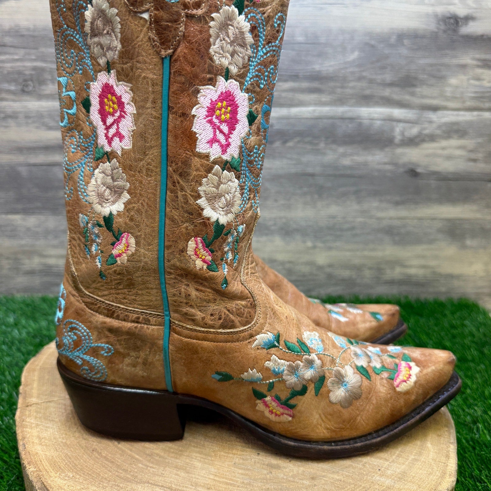 Macie Bean Women - Size 9M - Tan Rose Garden Snip Toe Cowboy Boots Style M8012