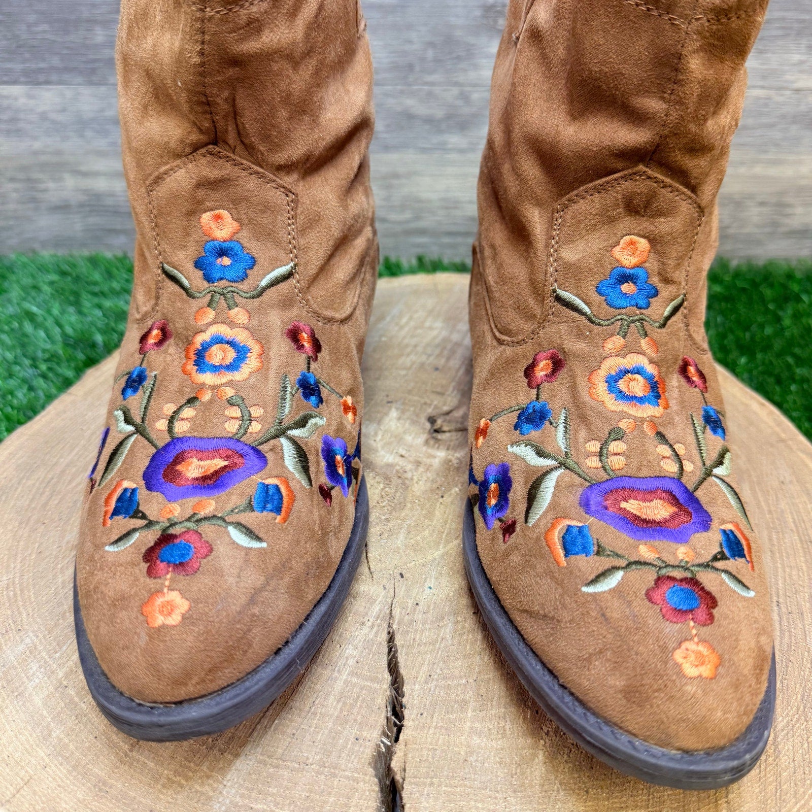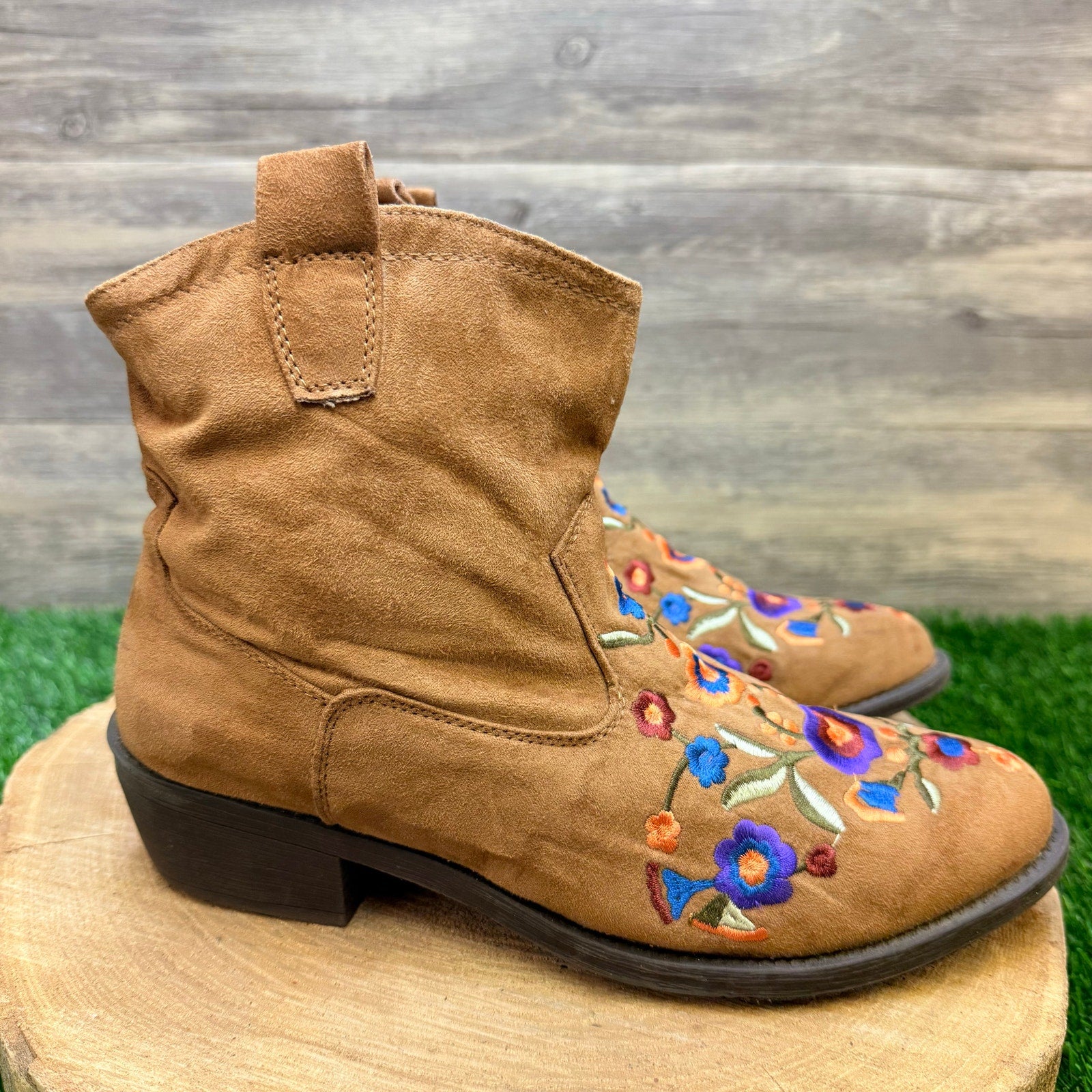 Mudd Women - Size 9M - Tan Floral Faux Suede Ankle Boots 73277