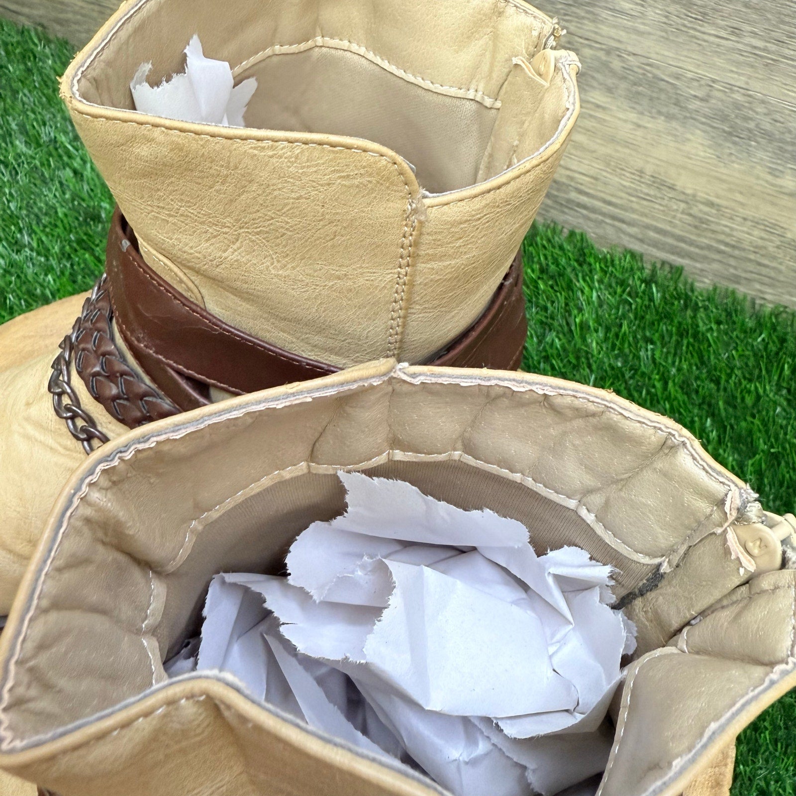> For showin’ off – sometimes we stuff a bit of paper or foam inside to help the boots stand tall for the photos.