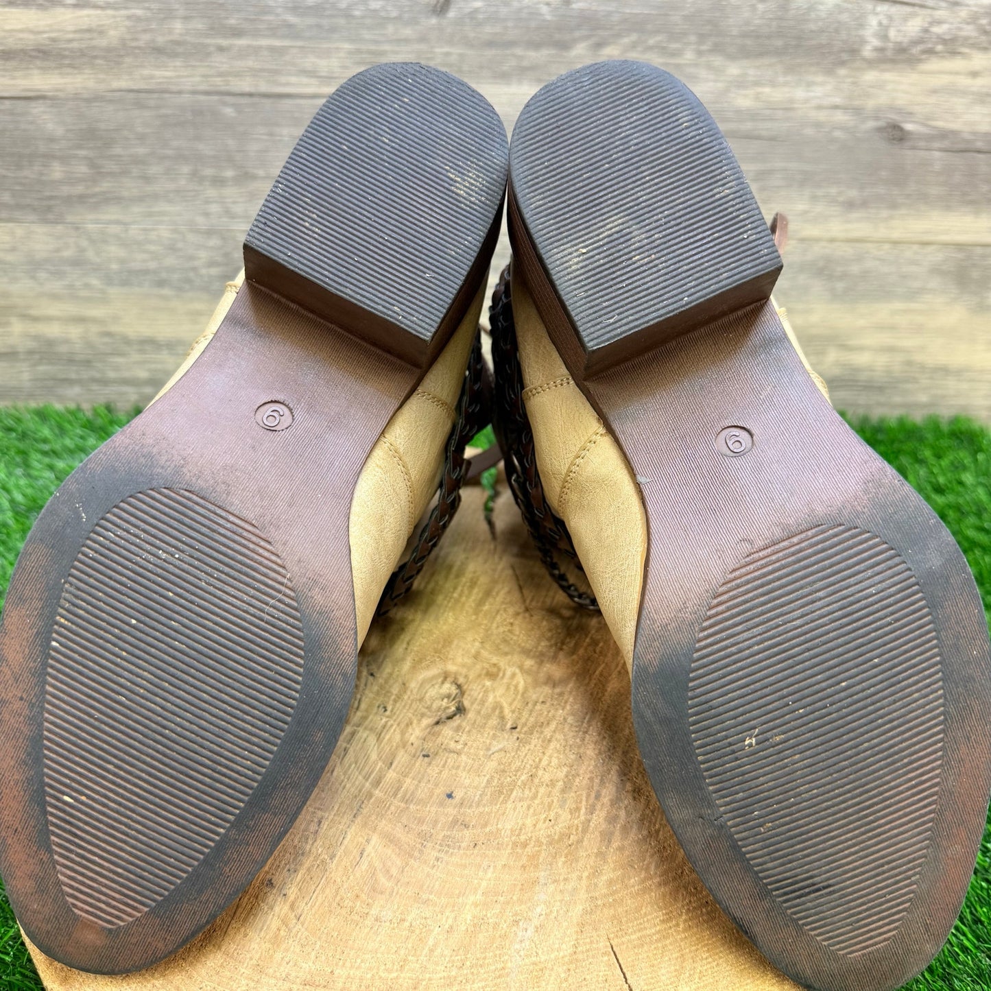 Pierre Dumas Women - Size 9 - Tan Ankle Zipper Belt Boots