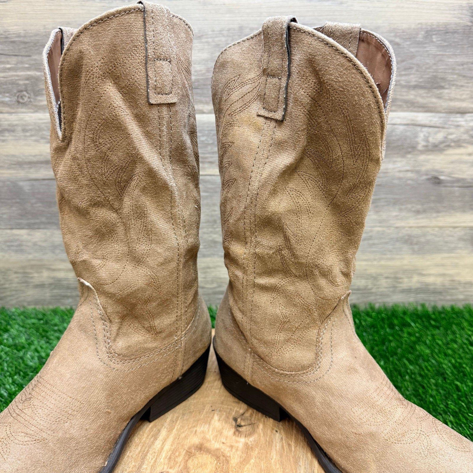 Rampage Women - Size 8M - Beige Faux Leather Cowboy Boots Walden 300301