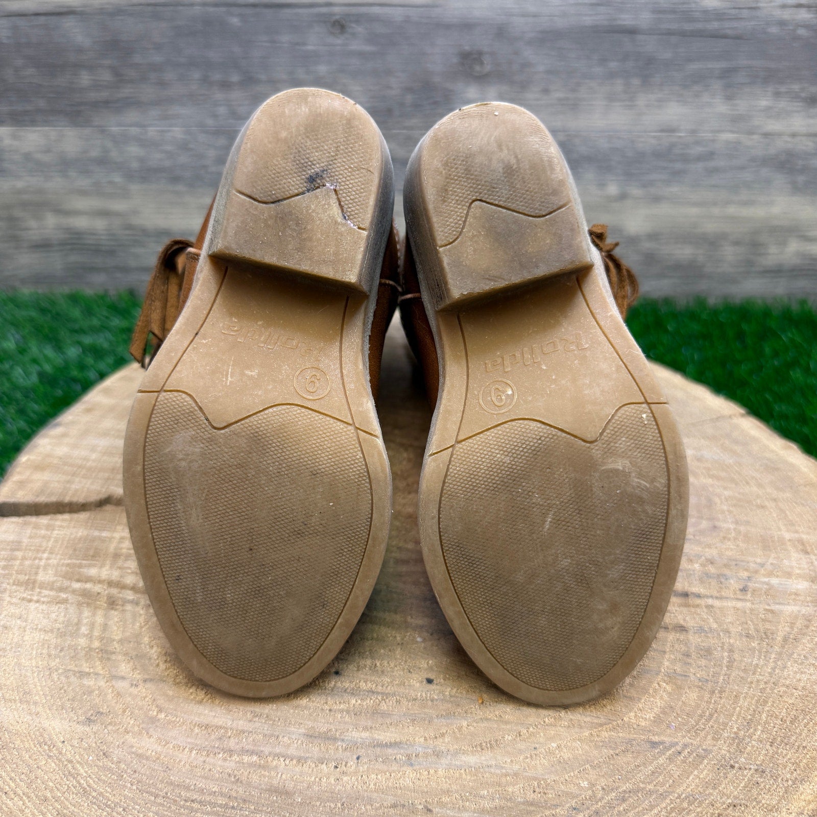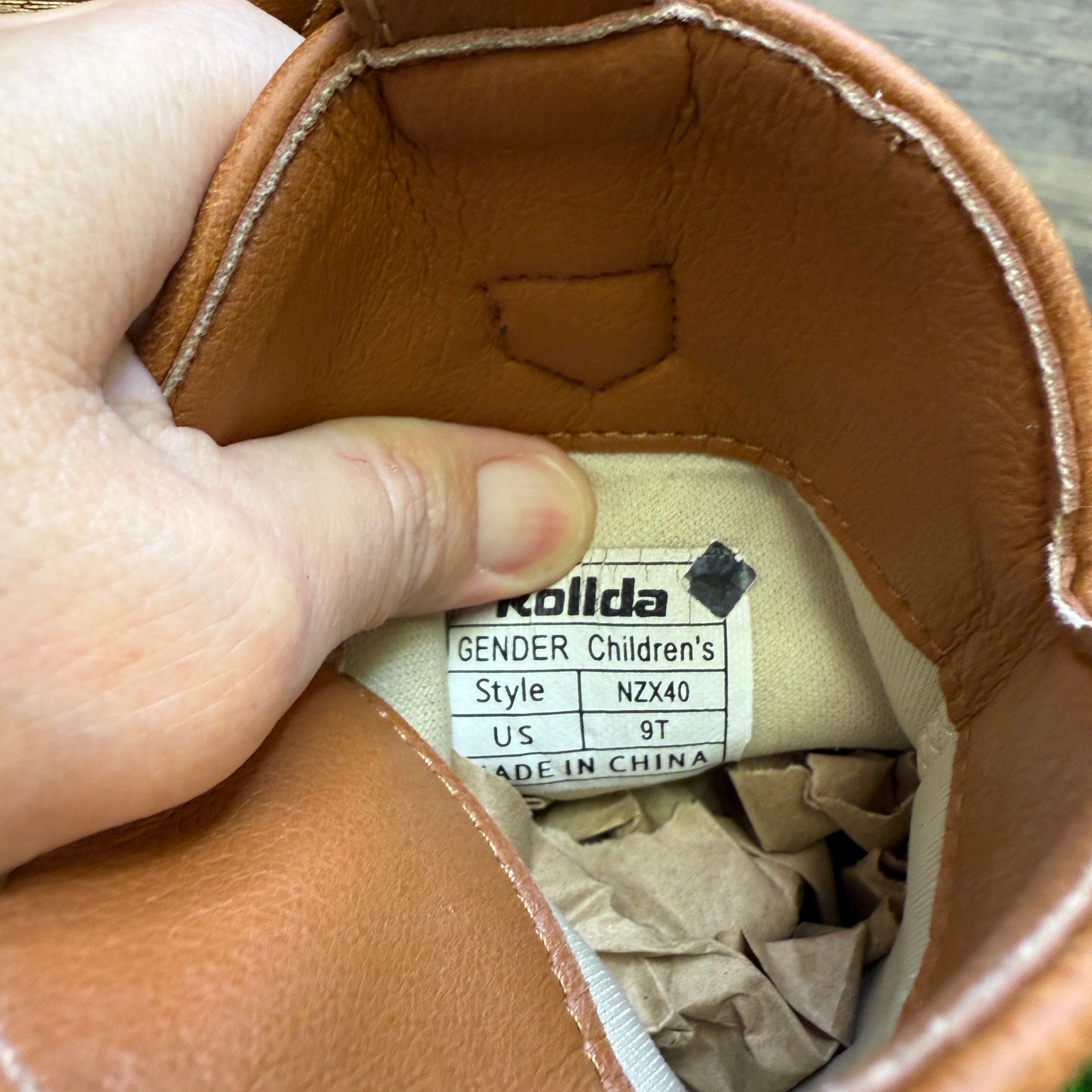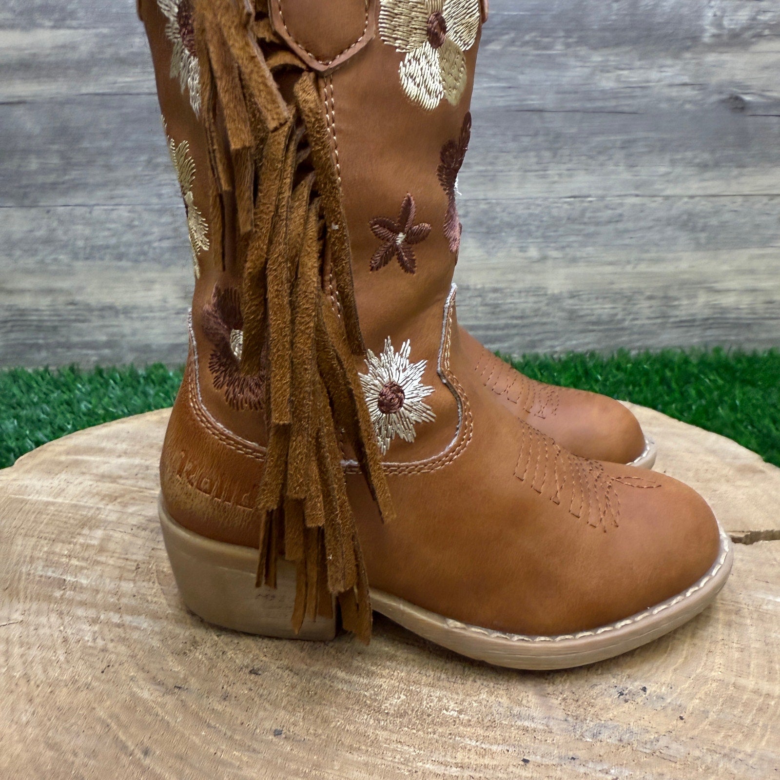 Rolled Youth - Size 9T - Tan Floral Fringe Faux Leather Cowboy Boots Style