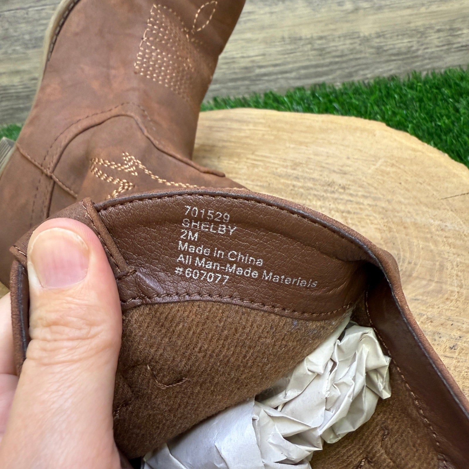 Shelby Youth - Size 2 - Brown Faux Leather Boots Style 701529