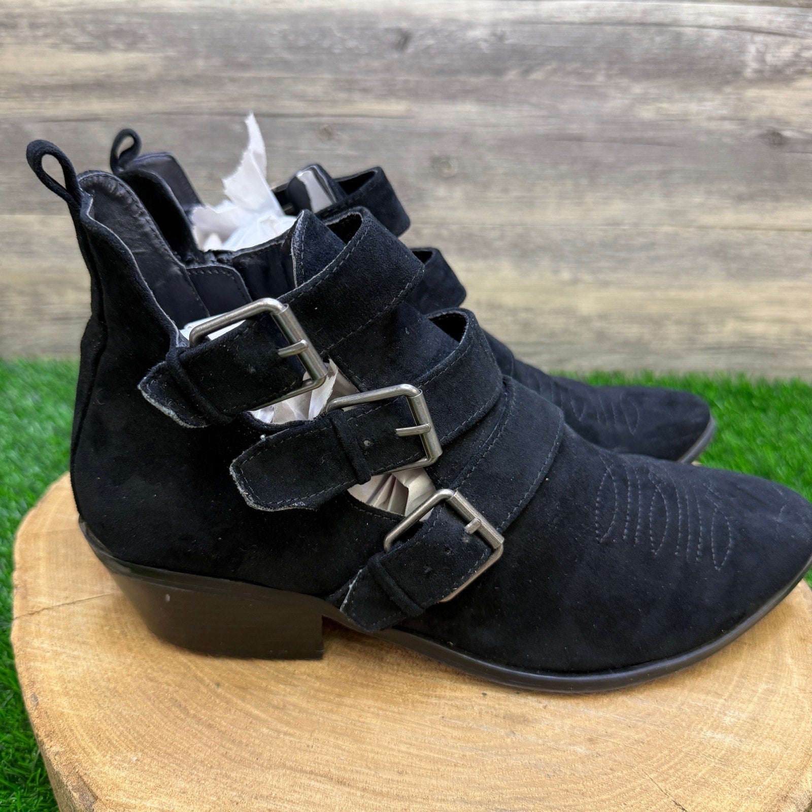 Universal Thread Women - Size 10 - Black Faux Suede Ankle Buckle Boots